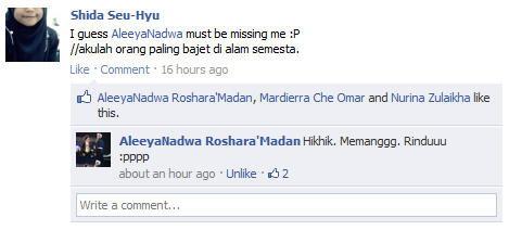 p/s: Ada orang tuhh rindu aku sebab seharian tak online. HAHA